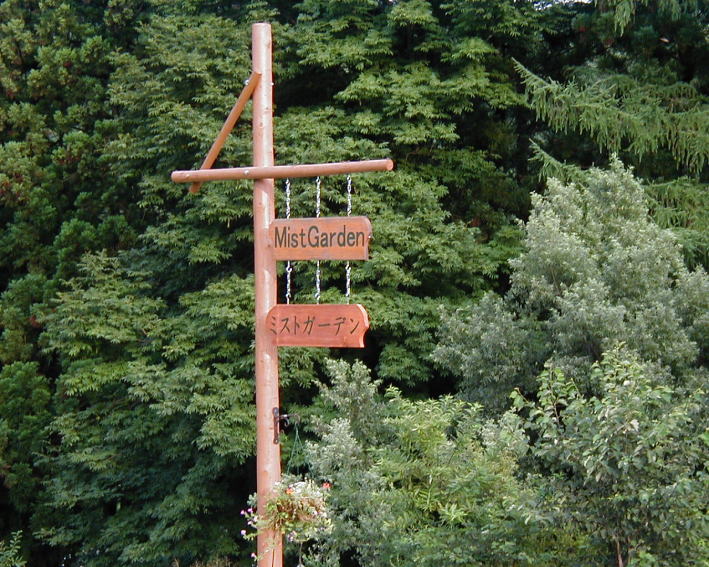ガーデン入口にカタカナ標記の「ミストガーデン」標識を増設しました。H14.08.08