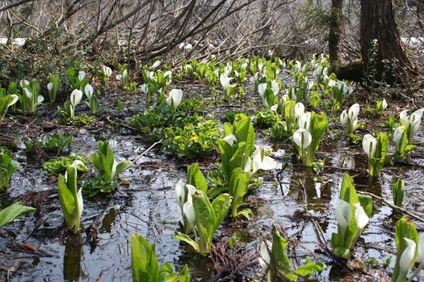 今年も林のガーデンは「水芭蕉や座禅草」がいっぱいに咲き出しました。