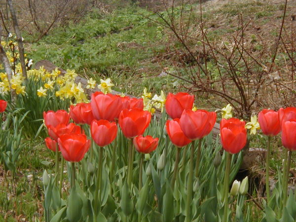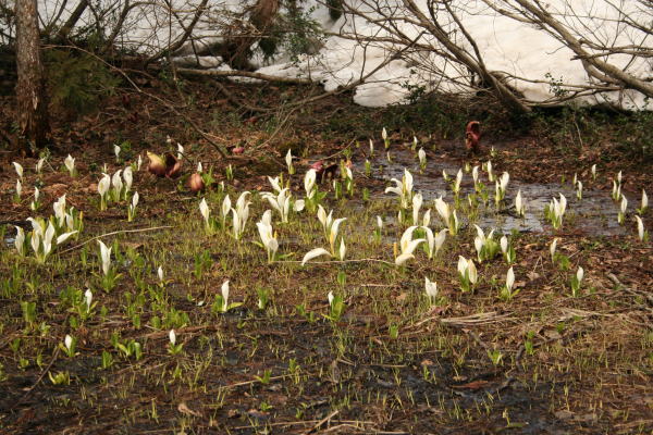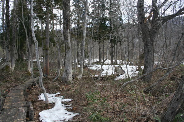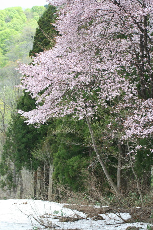 2009年4月26日:雨・4月に入って低温の日が多く、例年なら雪は消えているのですが現在約 20cmの残雪があります。