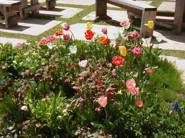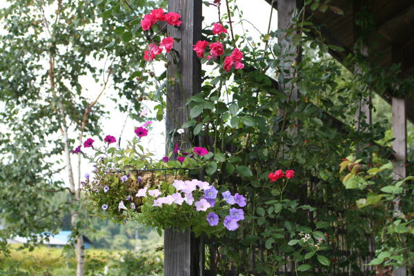 2009年6月8日:曇り・ガーデンは色とりどりの草花が咲いています。バラも一部咲きはじめました。