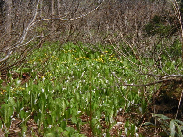 2009年5月17日:雨・残雪が消えて約2週間、素晴らしい新緑の芽吹きの季節になり草花が咲き出しました。